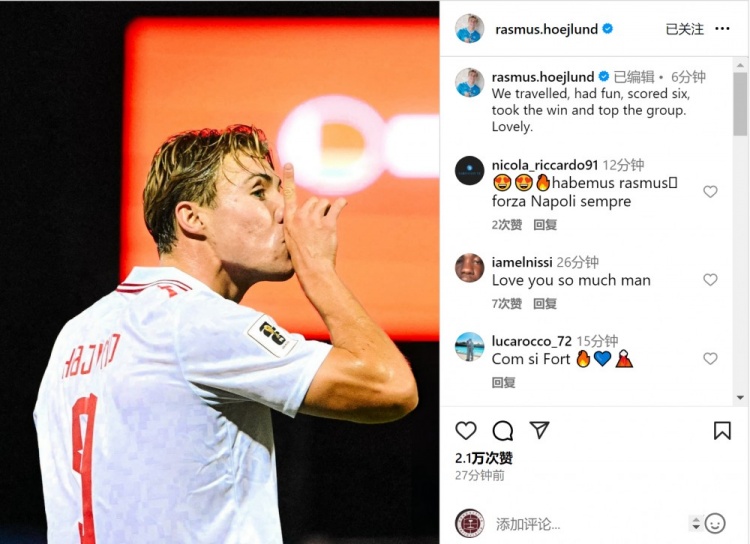 霍伊伦社媒晒出比赛像片,庆祝球队取胜,配文:“咱们远征客场,享受比赛,轰入6球,拿下得胜并领跑小组!太奥秘了。”