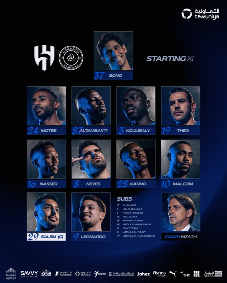 利雅得眉月vs利雅得后生东谈主首发:内维斯、特奥、库利巴利出战