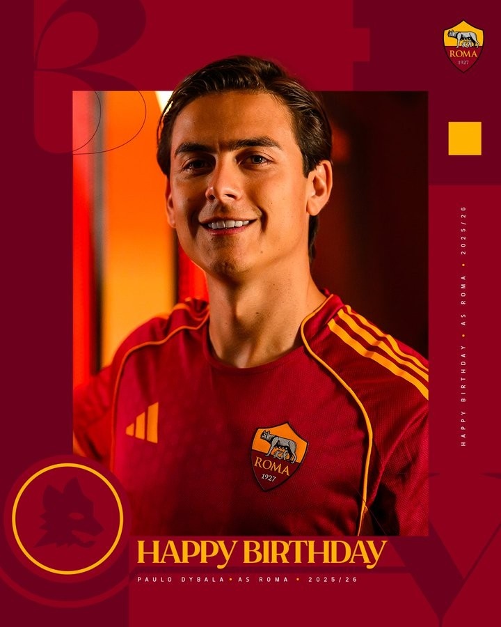 迪巴拉今天32岁寿辰,罗马官推发文道贺:寿辰兴盛!
