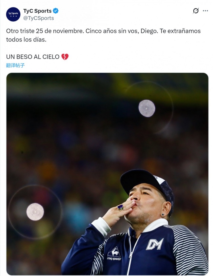 马拉多纳去世五周年🙏阿根廷媒体TYC发文惦记:每天齐在念念念你