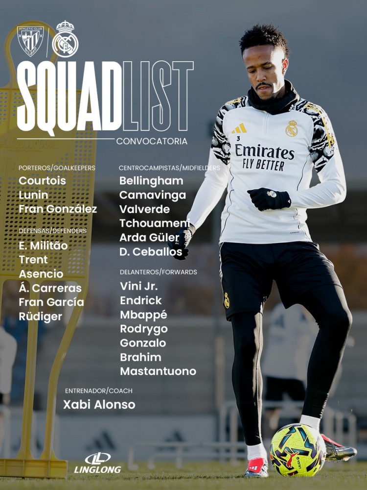 12月3日讯 北京时刻未来凌晨2点,西甲第19轮皇马将客场对阵毕尔巴鄂竞技,皇马公布了此役球队大名单。