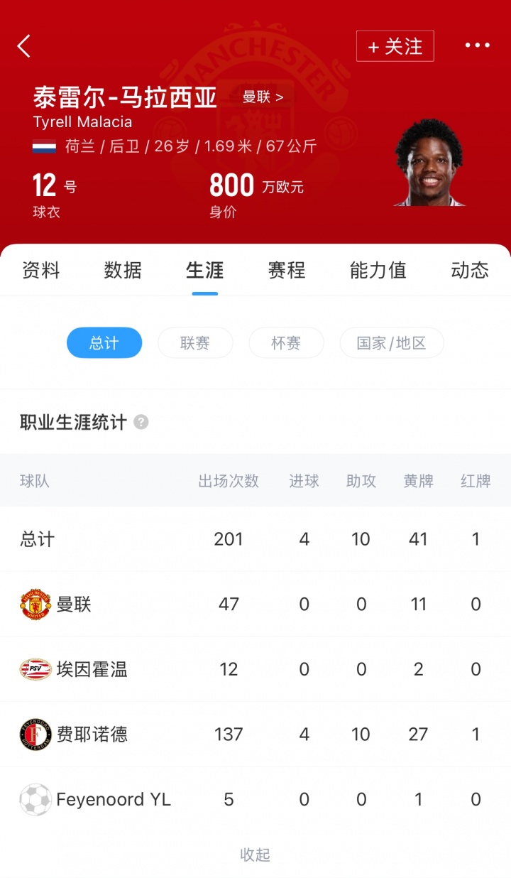 马拉西亚2022年加盟曼联,现在着力曼联3年共出场47次,0球0助拿到11张黄牌。