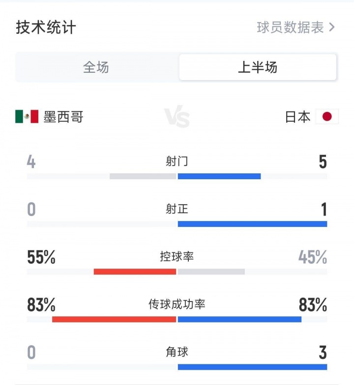 势均力敌!日本&墨西哥名次17vs13,半场0-0战平&数据旗饱读相称