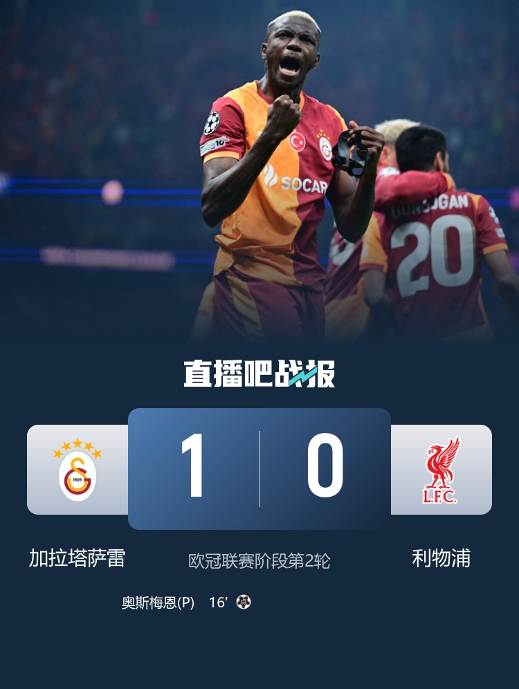利物浦爆冷0-1不敌加拉塔萨雷,切尔西1-0治服本菲卡,热刺2-2平博德精明。