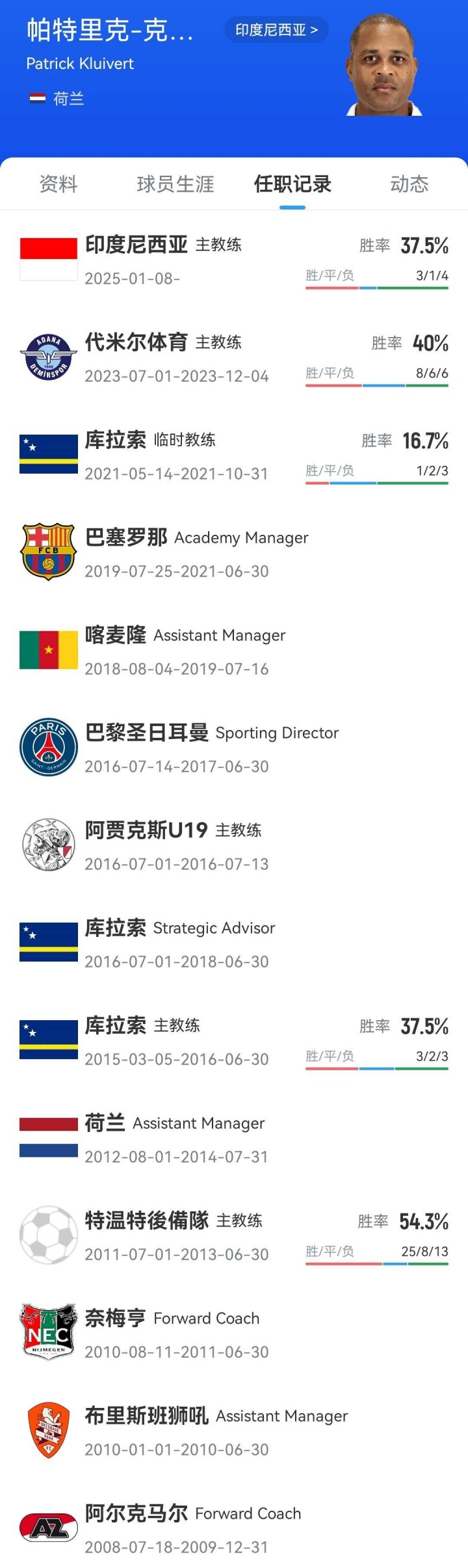 克鲁伊维特现年49岁,球员期间他是足坛最优秀的弓手之一,曾效劳阿贾克斯、AC米兰、巴萨等队,退役后曾担任喀麦隆助教、库拉索代理主帅。他合手教印尼前惟逐一段崇敬主帅履历是2023年7月起担任土超代米尔体育主帅,20场比赛8胜6平6负,合手教5个月便下课。克鲁伊维特还担任过荷兰国度队主帅范加尔的助教,匡助球队在2014年巴西全国杯赢得季军。