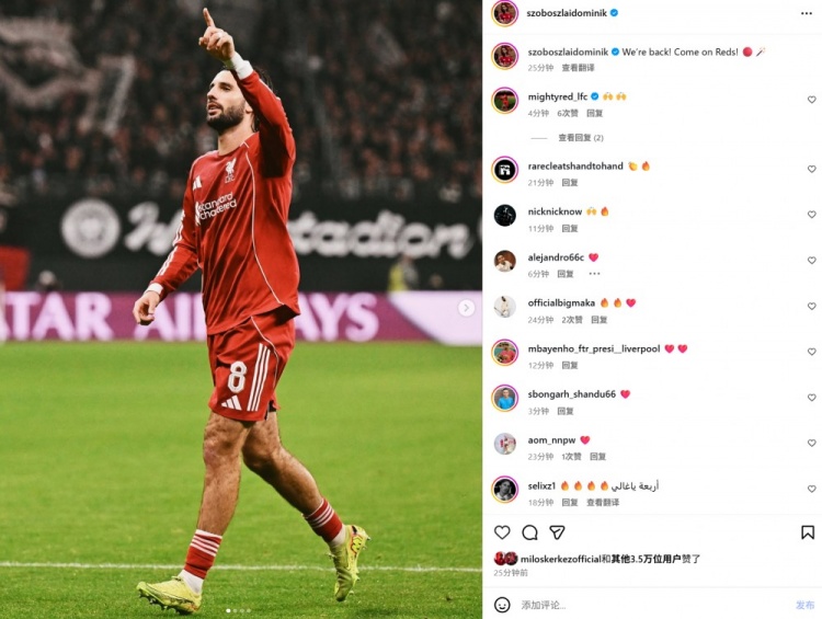 本场比赛索博斯洛伊传射立功,匡助球队拆伙4连败漏洞。赛后索博斯洛伊在社媒晒照写谈:“咱们转头了!赤军加油!”