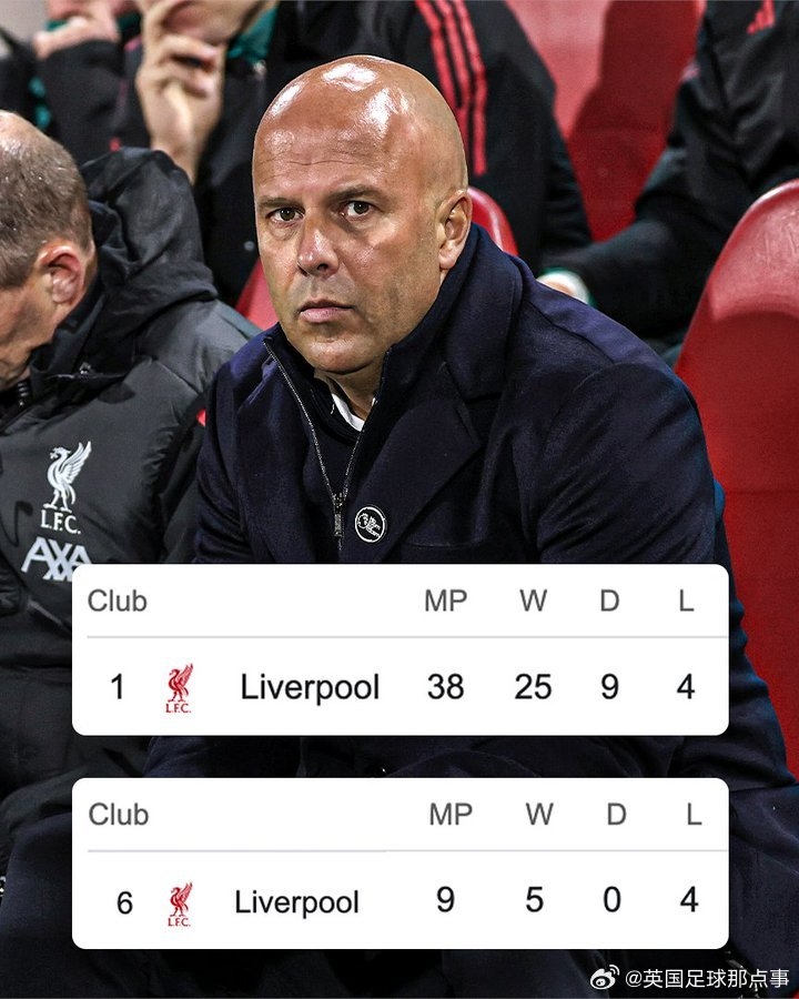 【情景暴跌】Opta:本赛季利物浦依然输了4场英超比赛,与上赛季悉数这个词赛季相似多....👀