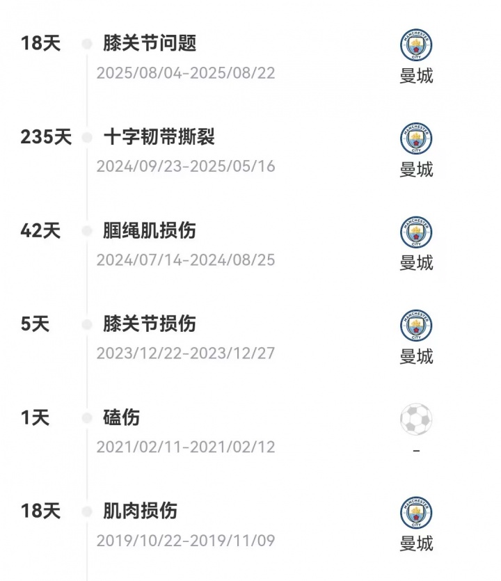 事实上,伤病在罗德里的处事生计华夏本并不常有,在2024年之前,罗德里只是碰到三次小伤,累计伤缺时代还不及一个月。