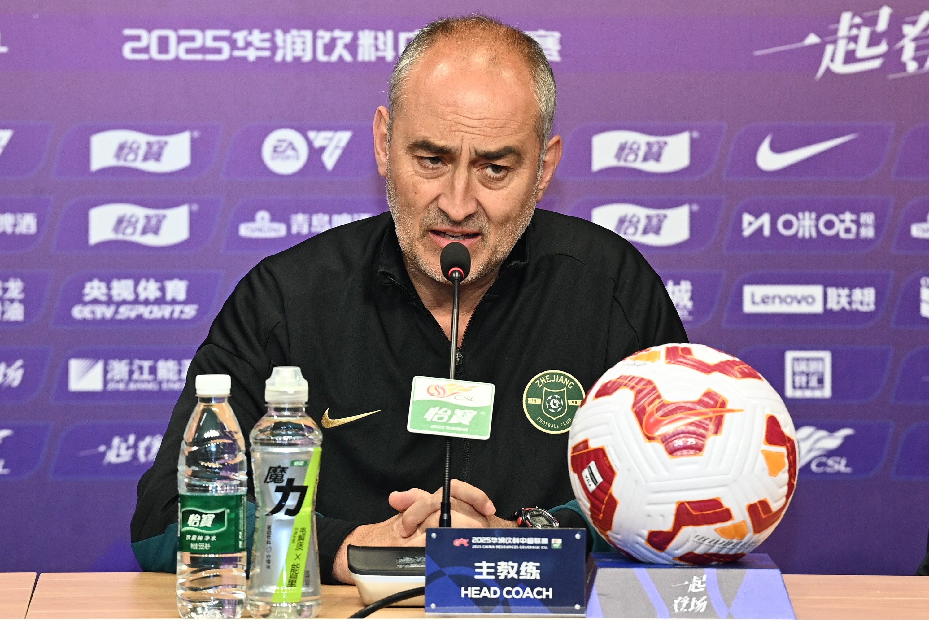 11月21日讯 中超联赛终末一轮,浙江队将主场对阵青岛海牛。据《足球报》报谈,赛前,浙江队主帅卡内达携球员弗兰克出席了新闻发布会。