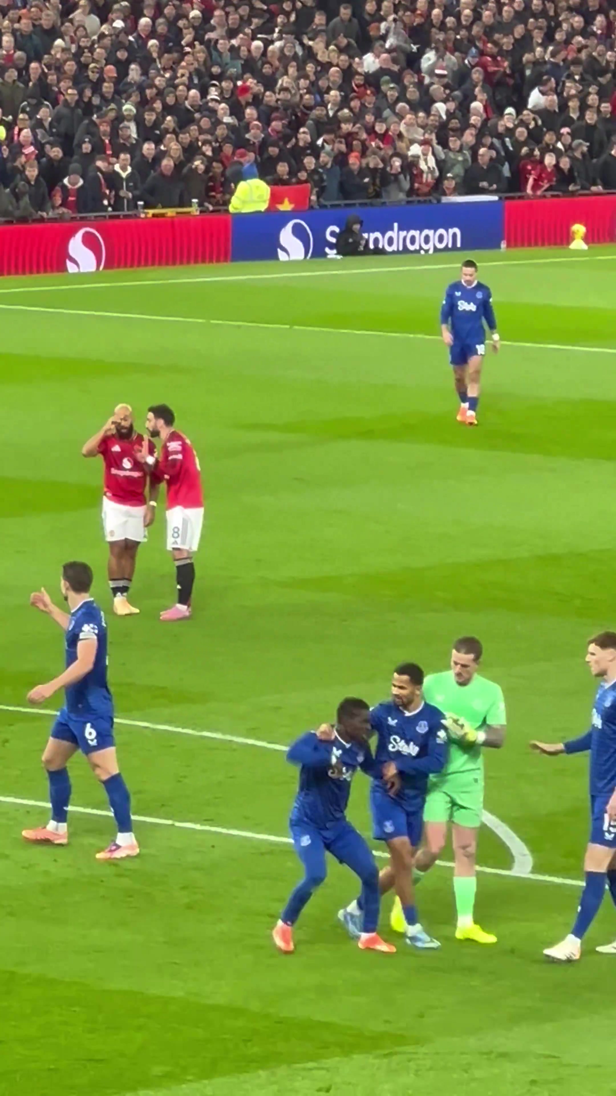 盖耶染红后心思怡悦喋喋不断,皮克福德和恩迪亚耶抱住安抚,盖耶仍在挥拳似乎要打东谈主。